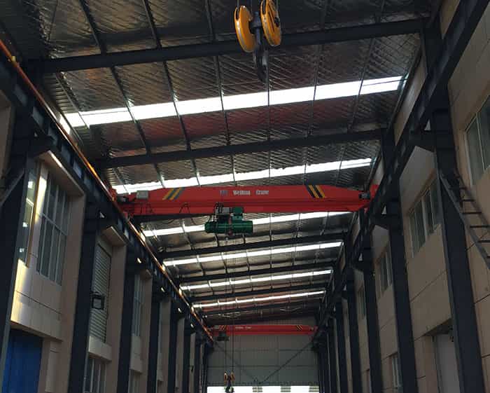 起重机广泛用于工厂、仓库、料场等不同场合吊运货物,禁止在易燃、易爆腐蚀性介质环境中使用。设有地面和空中两种操作形式。地面操作有带线手柄操作和遥控器手柄操作两种;空中操作指司机室操作。司机室有开式、闭式两种,可根据实际情况分为左或右面安装两种形式,入门方向有侧面及端面两种,以满足用户在各种不同需要的情况下进行选择。